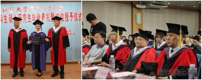 毕业典礼暨学位授予仪式在激昂雄壮的国歌声中拉开帷幕。李雪铭副校长代表学校向毕业生们表示祝贺,并为学子们送上了祝愿和祝福;关伟院长宣读本届中外毕业生名单,共有17位本科生、67位硕士研究生符合毕业要求。伴着《友谊地久天长》的歌声,关伟院长为毕业生颁发毕业证书,李雪铭副校长颁发学位证书并拨转流苏,然后与每一位毕业生合影留念。