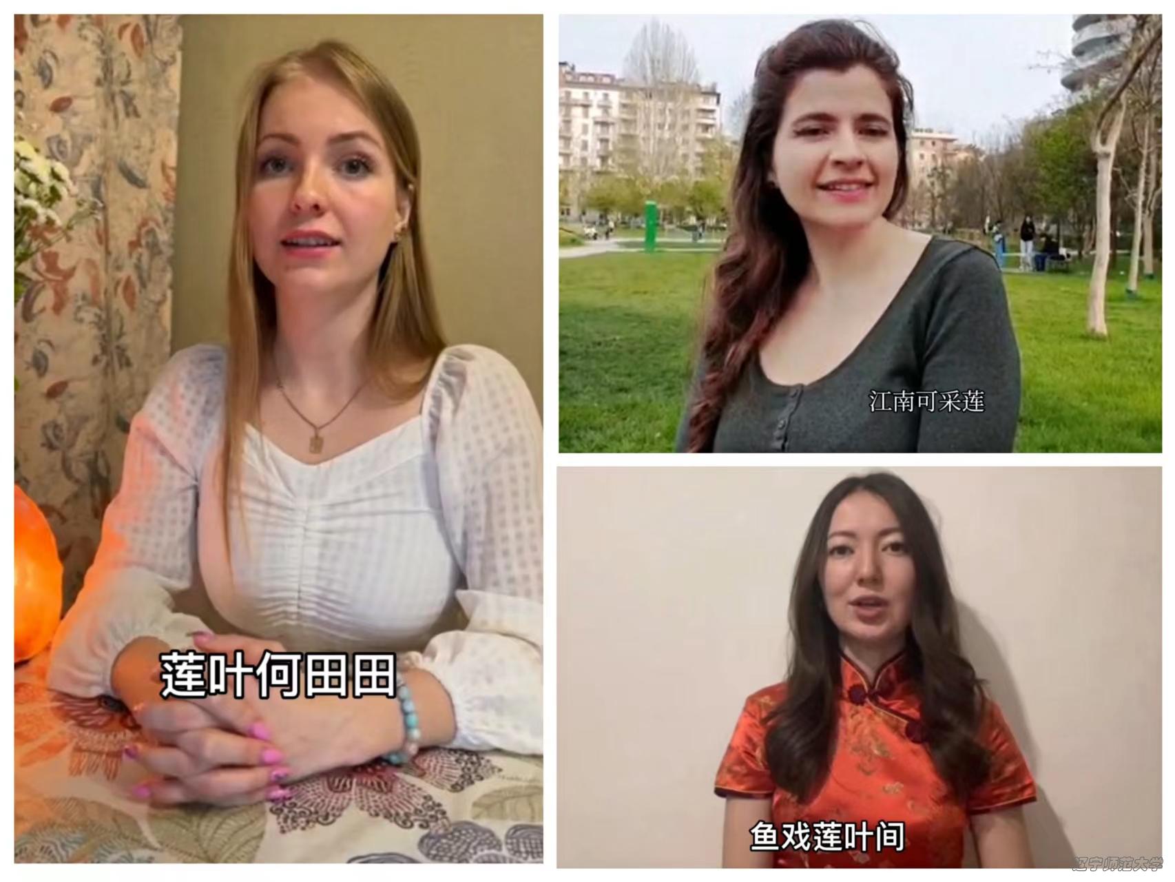 在中国文化介绍与体验的课堂上,授课教师带领学习者学习并吟诵了汉代乐府诗《江南》。“江南可采莲,莲叶何田田,鱼戏莲叶间……”清新朴实、朗朗上口的诗句使学习者沉醉其中,深感中国人不仅勤劳淳朴,更有乐享人生的一面。课后,他们纷纷录制诵读视频,分享学习心得。