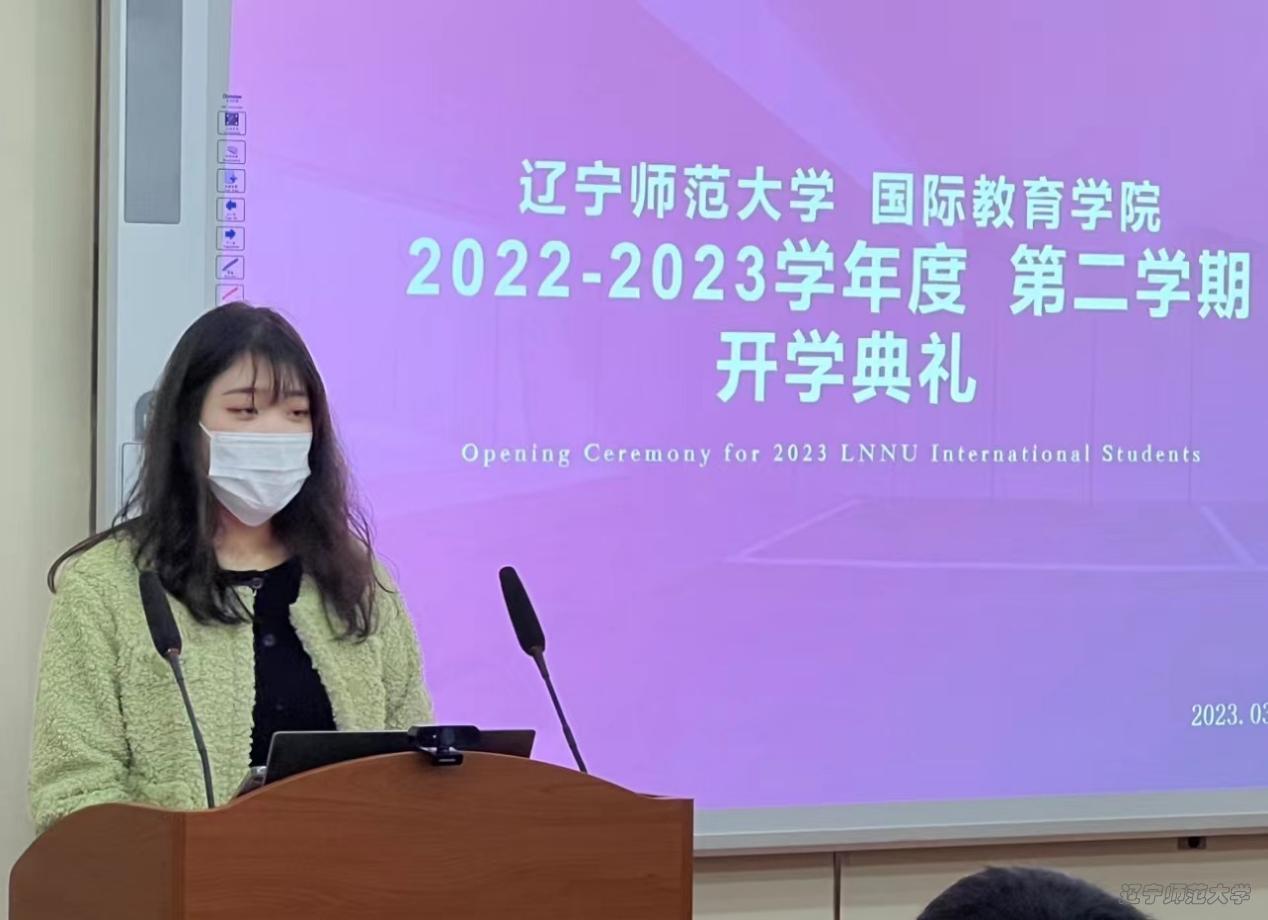 之后是本科生代表李佳映(韩国)发言。她表示本学期终于迎来了线下学习的机会。之前线上学习克服了重重困难与挑战,现在可以走进校园,更应该珍惜来之不易的学习机会。
